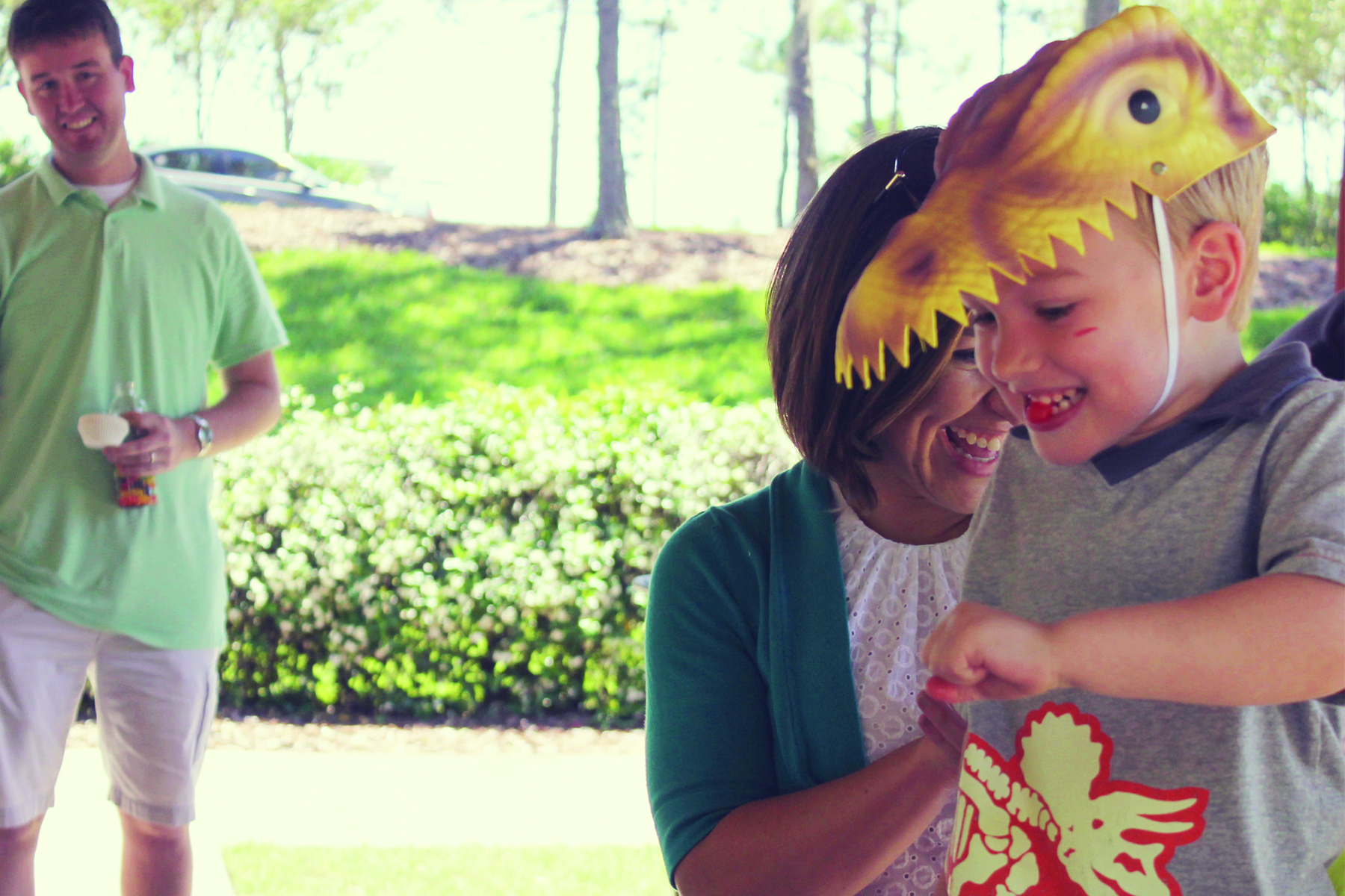 Right before my birthday boy’s coveted piñata pull, the wind threw a tantrum and knocked over a glass bottle that was filled with edible dino eggs (jelly beans). So, we went on an impromptu Jurassic jaunt around the park while the dads made sure each shard of glass was tossed.