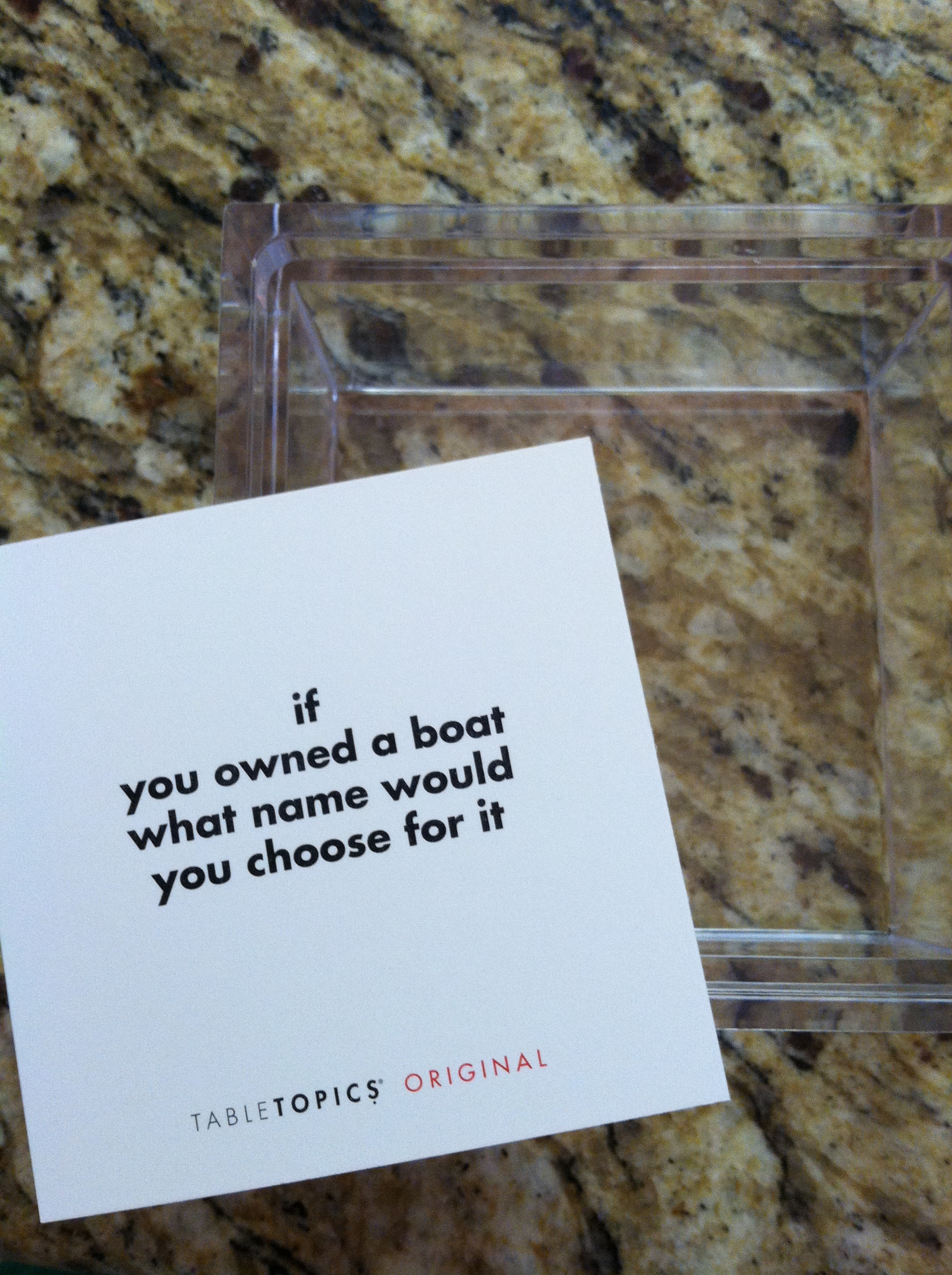 Happy Tuesday to you. It’s Table Topic Tuesday Time!