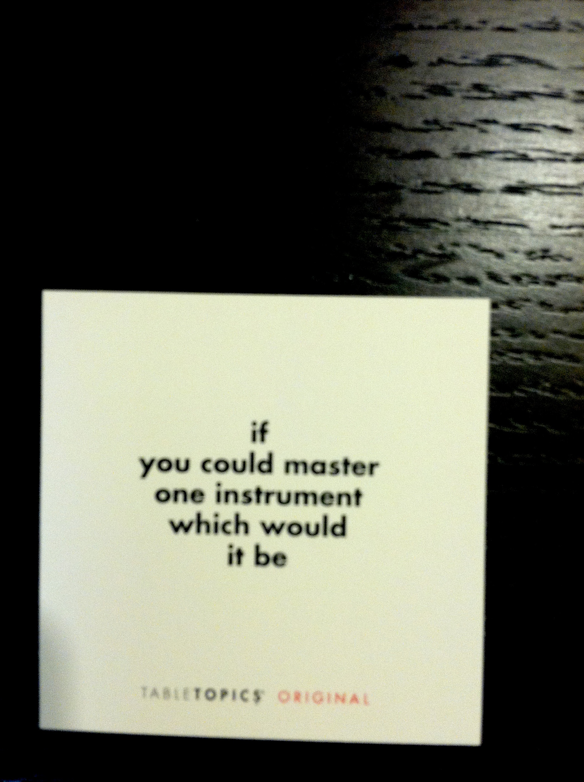 If I could master any instrument, I’d have to choose my voice. I already wail in the car, in the kitchen, in the shower. I sing lullabies every night. I hum–often unconsciously, often in public. Since singing is second nature, I’d love to have a gift.