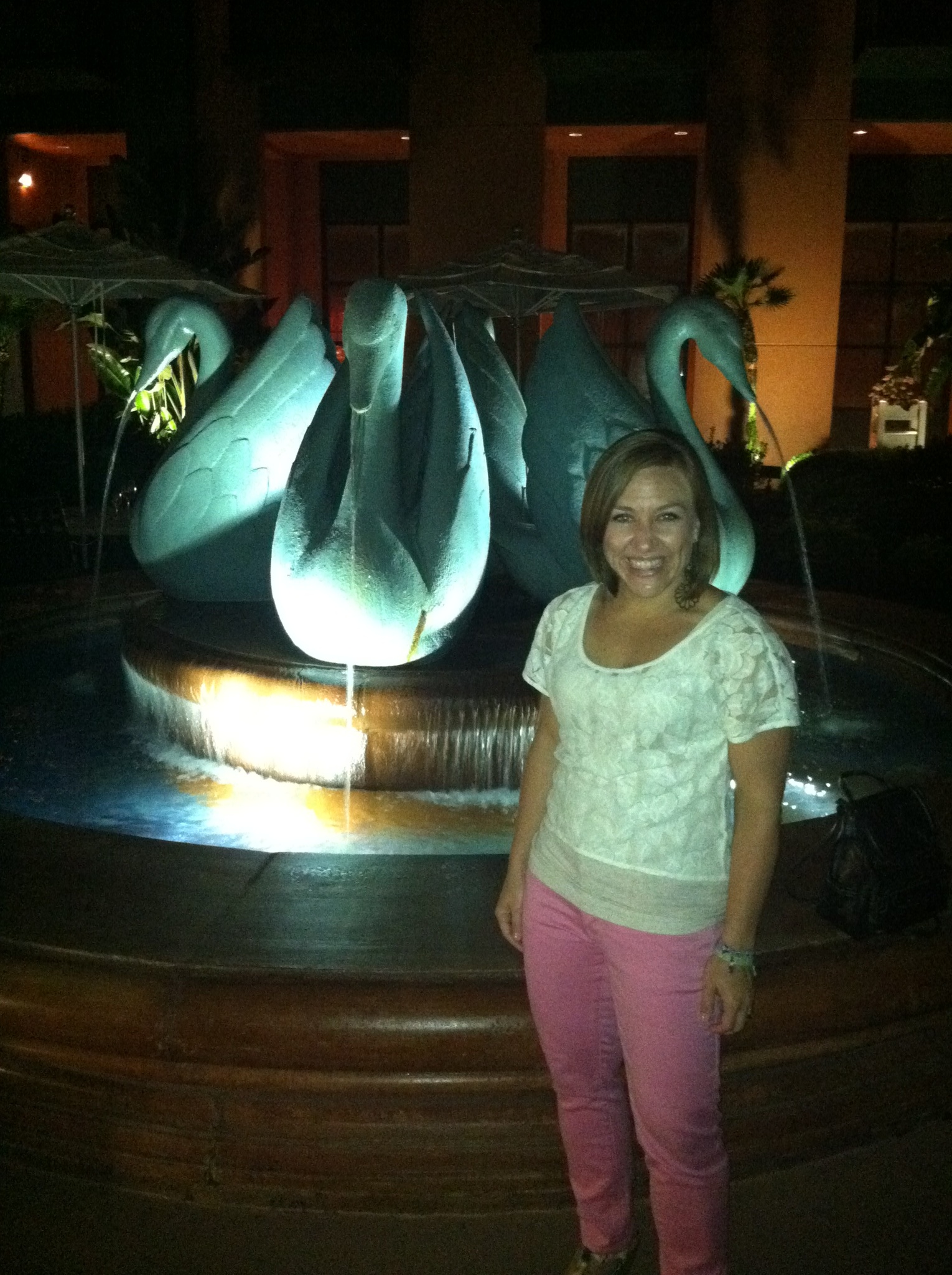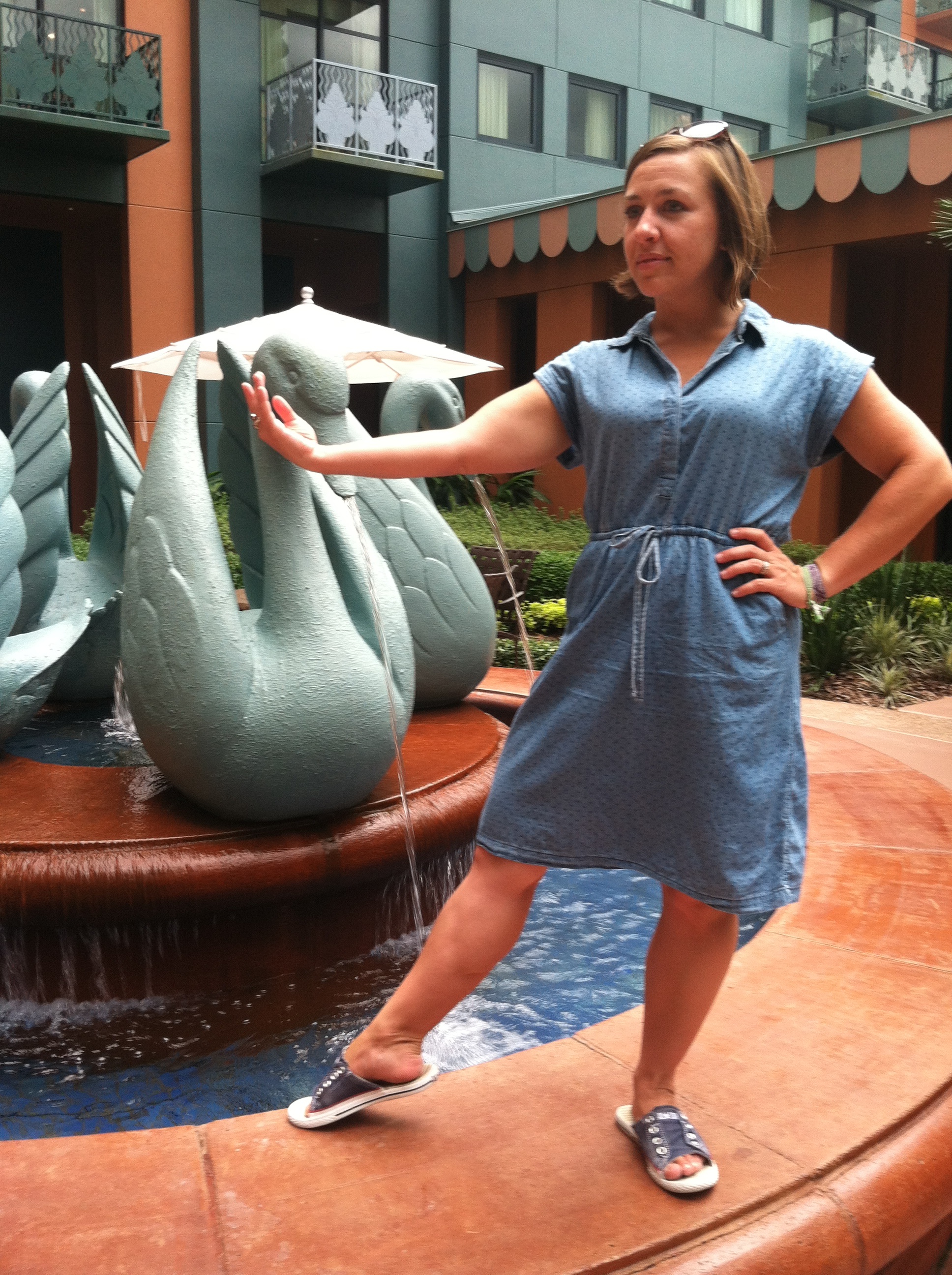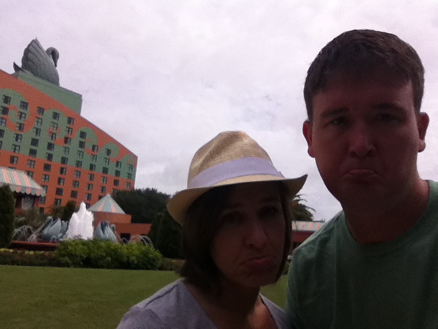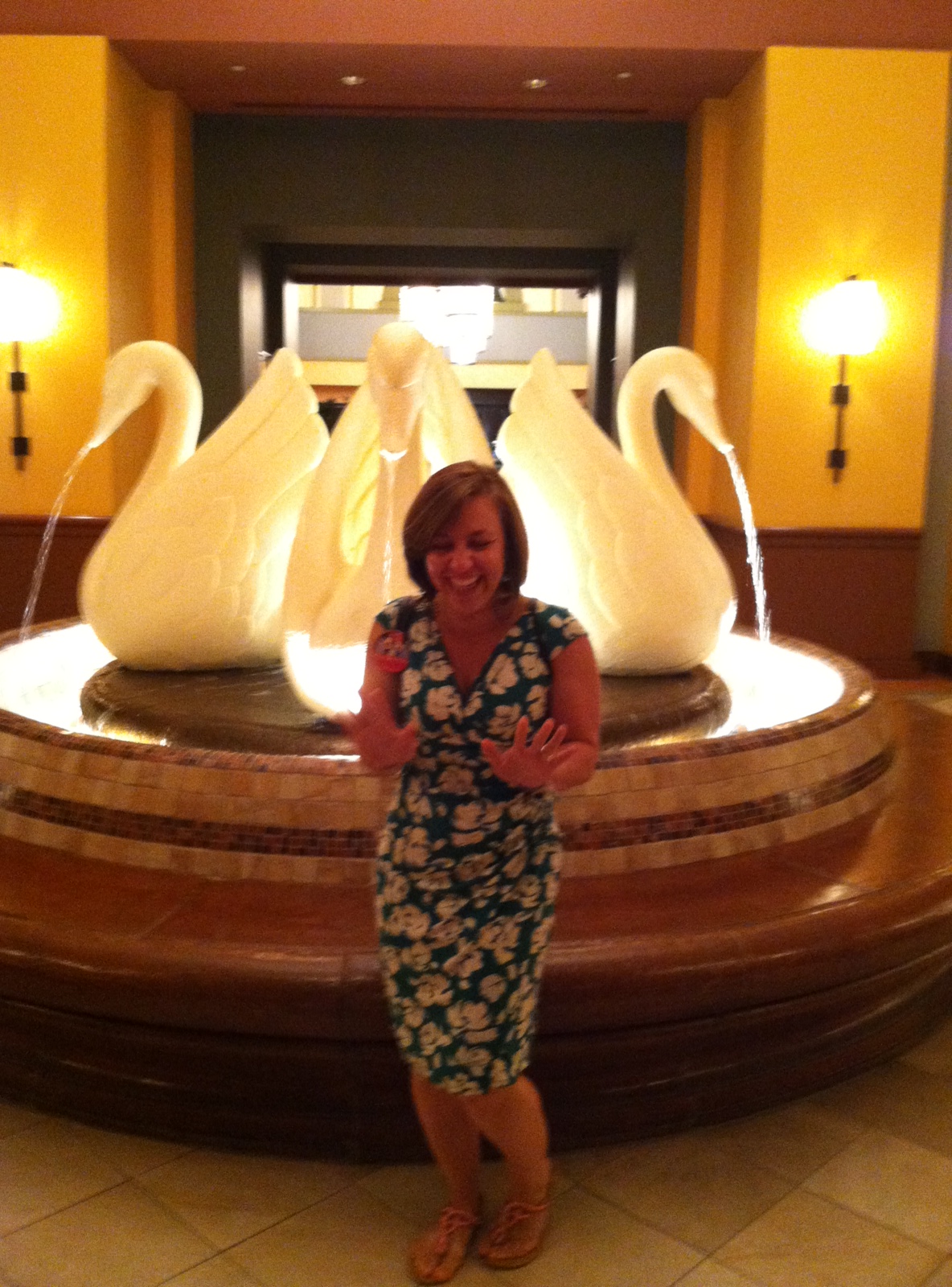 I’ll back up. I didn’t go all Hemingway on you last week. Jeff and I were on a 7-day vacay to celebrate our 10th wedding anniversary. Blogging was brief because we, among other things, had to see about some swans. We stayed at the Walt Disney World Swan hotel, home to a gaggle of swans. They were everywhere. We were giddy. So our Swan Series starts. Cheese!