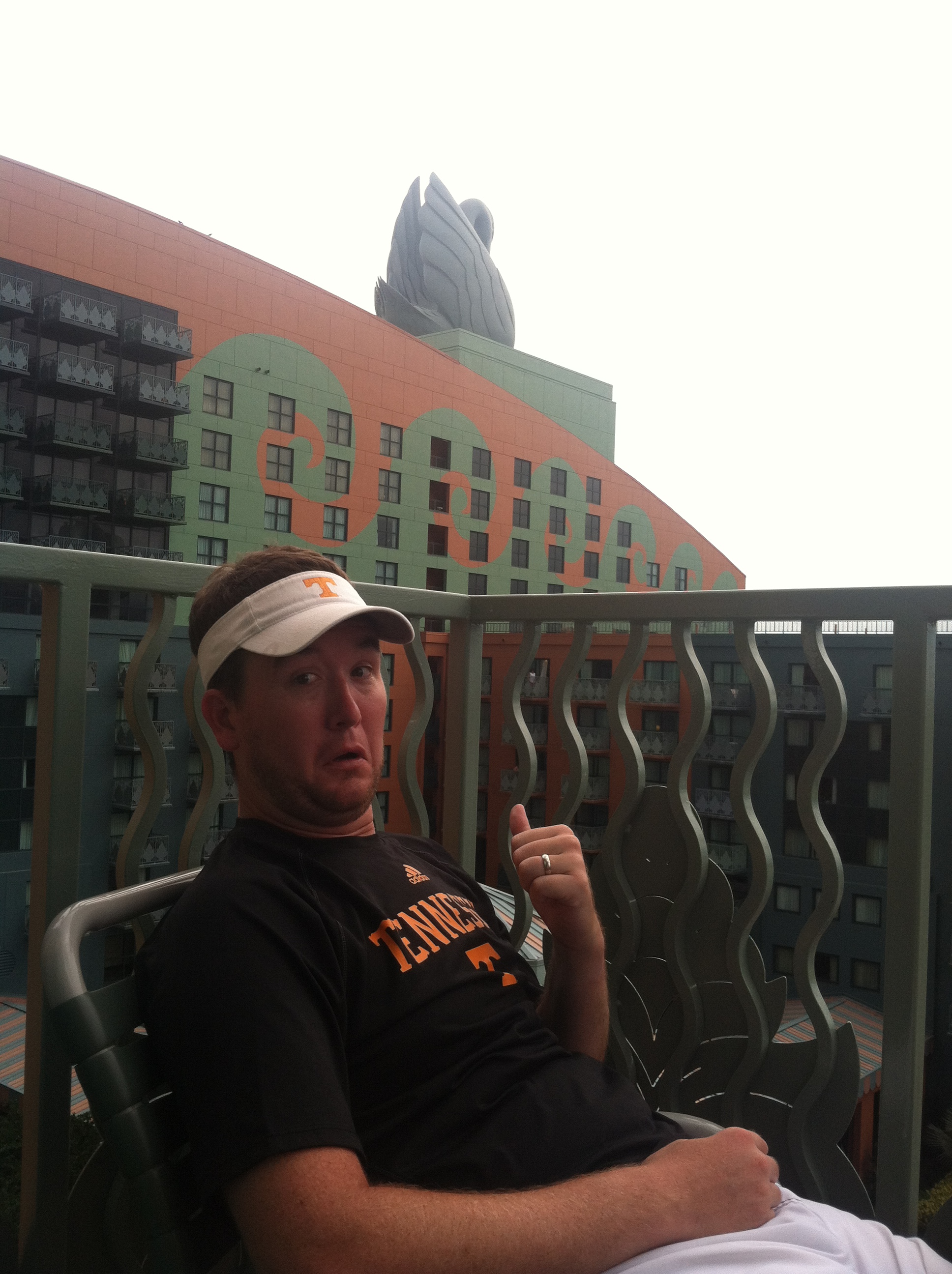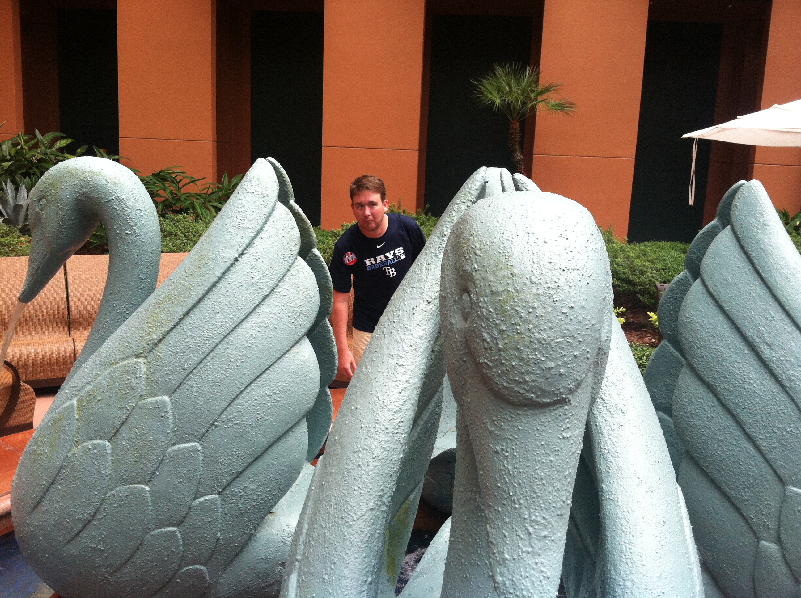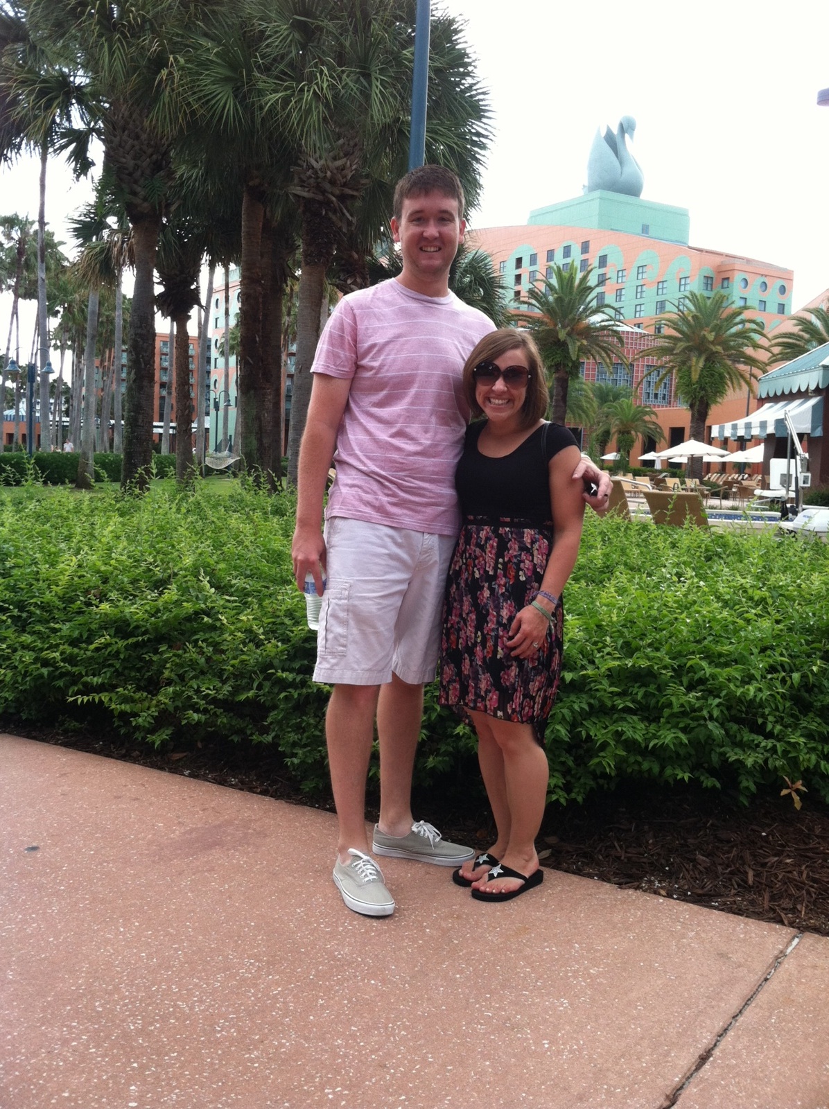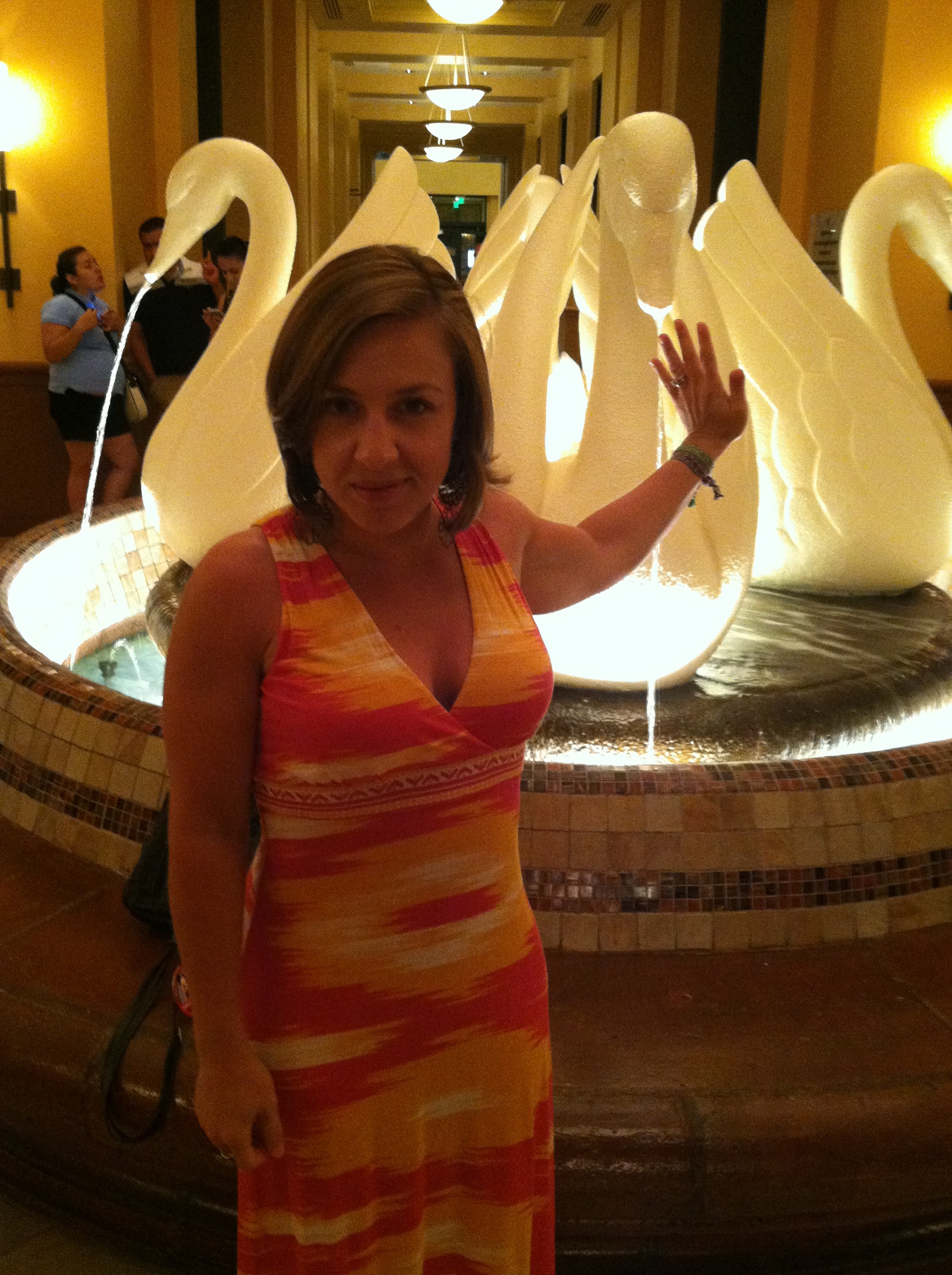I’ll back up. I didn’t go all Hemingway on you last week. Jeff and I were on a 7-day vacay to celebrate our 10th wedding anniversary. Blogging was brief because we, among other things, had to see about some swans. We stayed at the Walt Disney World Swan hotel, home to a gaggle of swans. They were everywhere. We were giddy. So our Swan Series starts. Cheese!