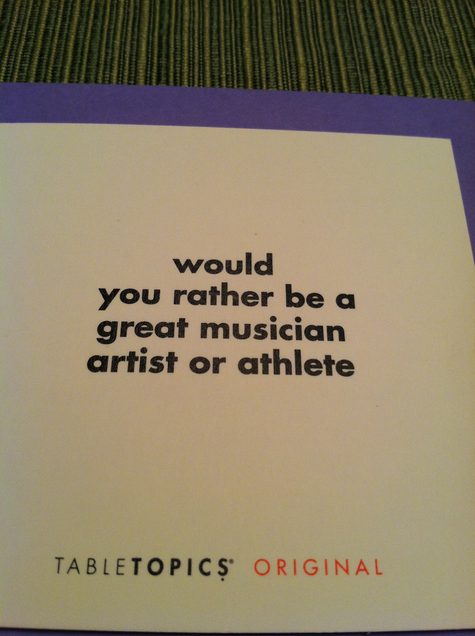 Hiya. It’s Table Topic Tuesday time!