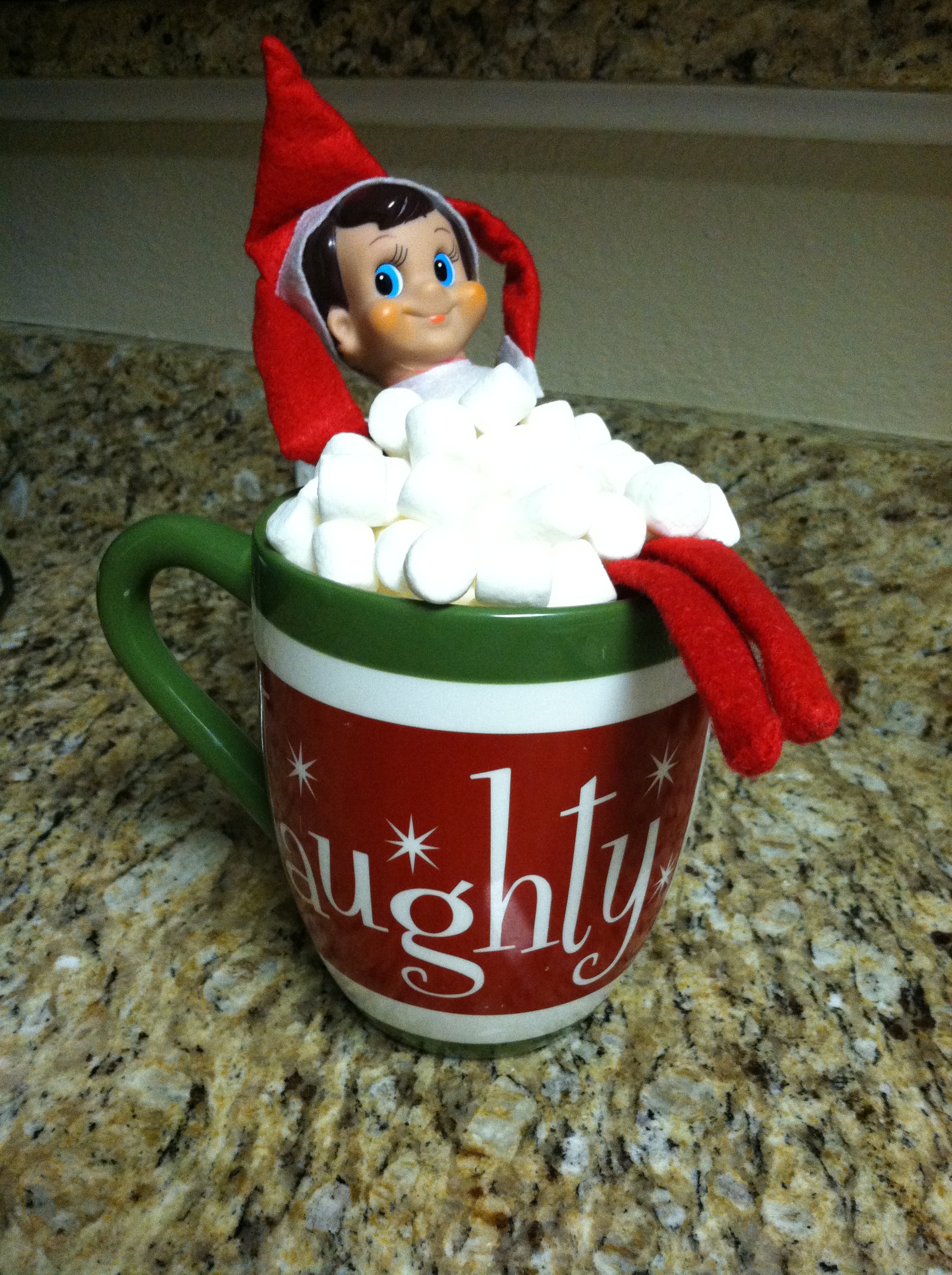 This footless, frozen-faced sprite freaks me out a little bit. I mean, let’s call him what he is. He’s a spy. A bribing spy. And there are entire Pinterest pages and blogs and sites encouraging this mischief.  We’re drinking the eggnog, too. The boys love our Adam Winston Adams. So far this season, he’s wrapped an entire toilet in Christmas paper, gone fishing for goldfish in the sink and taunted me with unblinking, plastic eyes to one-up yesterday’s stunt. I kinda want to send him to tinsel oblivion. Can I get a witness?