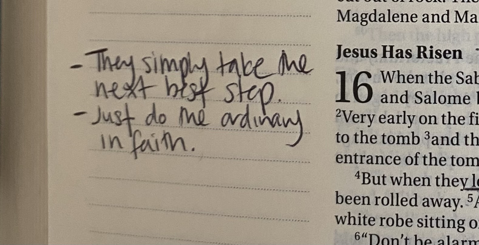 You despise snakes (nope-ropes, fear-spears, danger-noodles), you loathe bad drivers. But, most of all, you’re really not keen on small talk. Your teacher gave you the Inquisitive Intellect award this year. I know why. You ask us pointed questions at dinner: If you could only do one job every day for the rest of your life, what would make you the happiest? What’s the soundtrack of your life? What place on the earth is the most you? You push and you ask and you interrogate, yet your faith keeps you anchored. Your clarity can be alarming, unsettling. When I needed to make one of the biggest decisions of my career, you asked me: do you ever go back and read the notes you take in church? I took your advice, my kid, my teenager, and found the answer in black and white. Simply take the next best step. Just do the ordinary in faith.